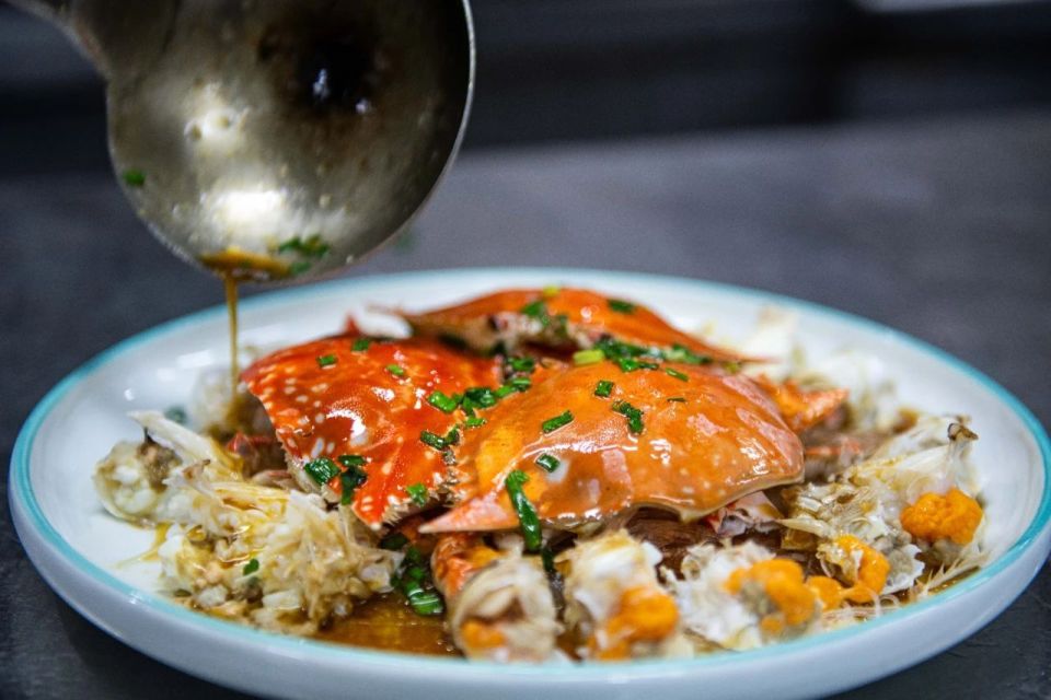 球场下,我们围蟹叙旧!鲜活上岸的梭子蟹,自有百般手段征服你的舌尖:清蒸的,最能显其本真之味;葱油煸香的,焦香裹着肥腴蟹肉,热烈诱人;梭子蟹炒年糕,一口又是鲜又是糯;咸鲜下饭的蟹骨酱,别具风味;金沙裹壳的咸蛋黄焗蟹,喷香惹味;热腾腾的蟹糊汤配米面,暖心暖胃……若偏好温润绵长,本地的倒笃蟹堪称一绝,黄酒浸润,慢笃入味,嫩滑鲜美直叫人竖大拇指。