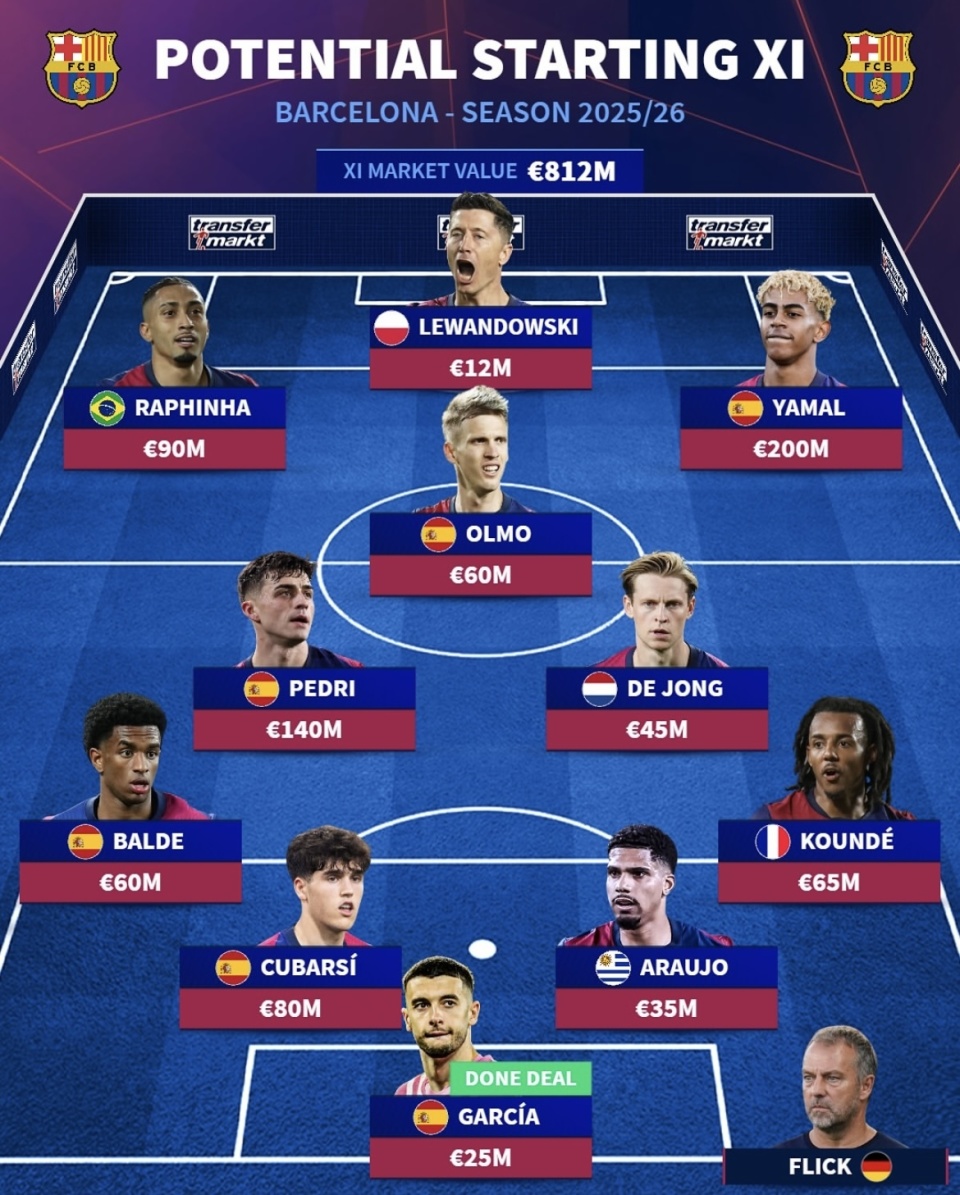 巴塞罗那(2025/26 潜在首发|总身价:8.12亿欧元)
